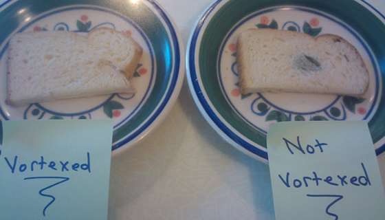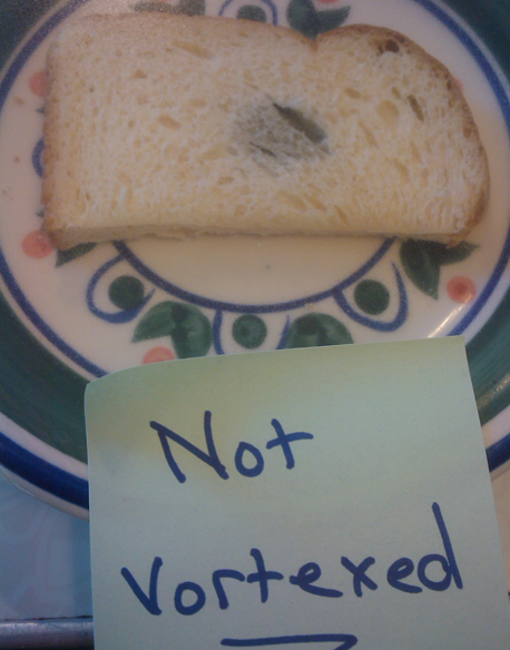 Vortexed" slice is a bit of mold growing where I had put